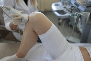 Step 2-Procedure: The patient’s skin is first coated with a gel. An interface (probe) is rolled over the skin surface, producing sound waves and receiving sound wave reflections.Â