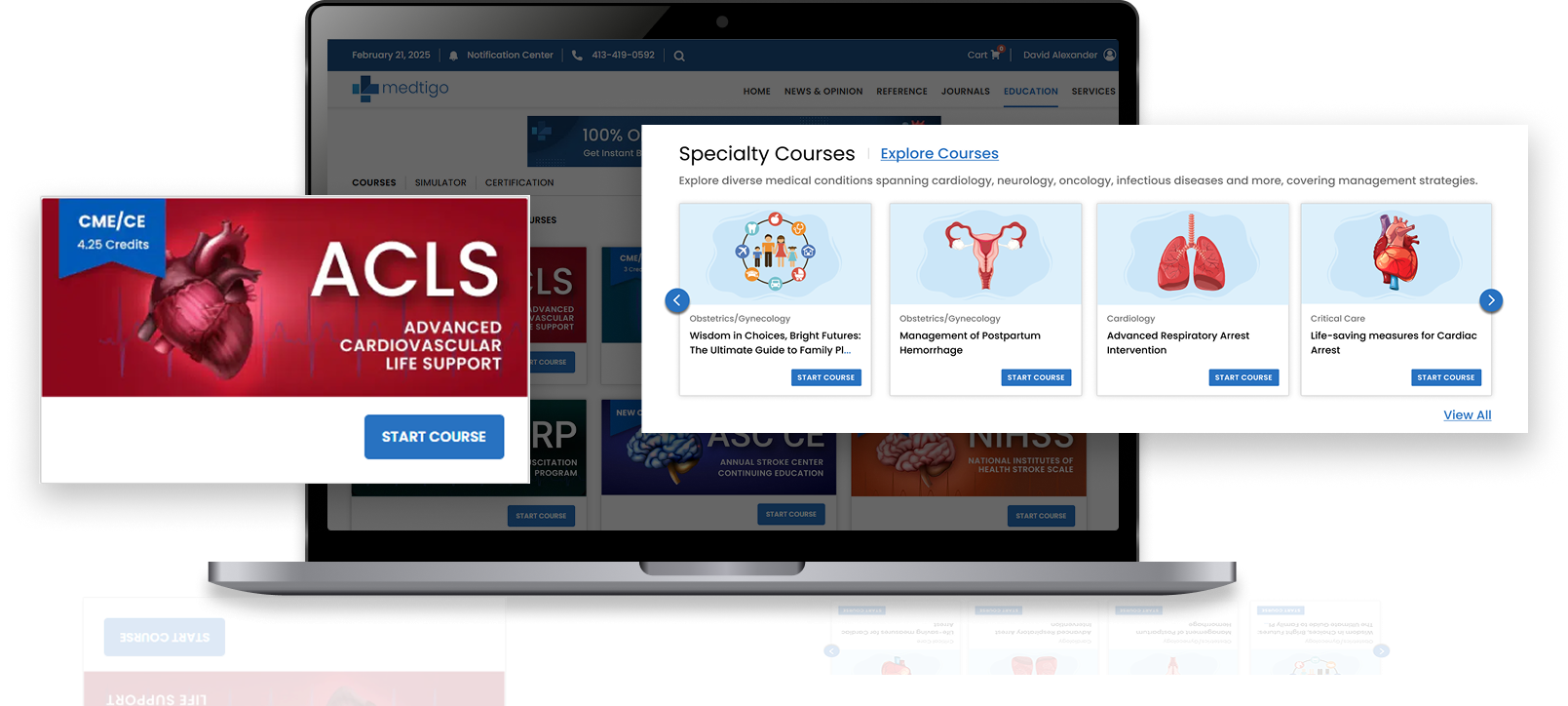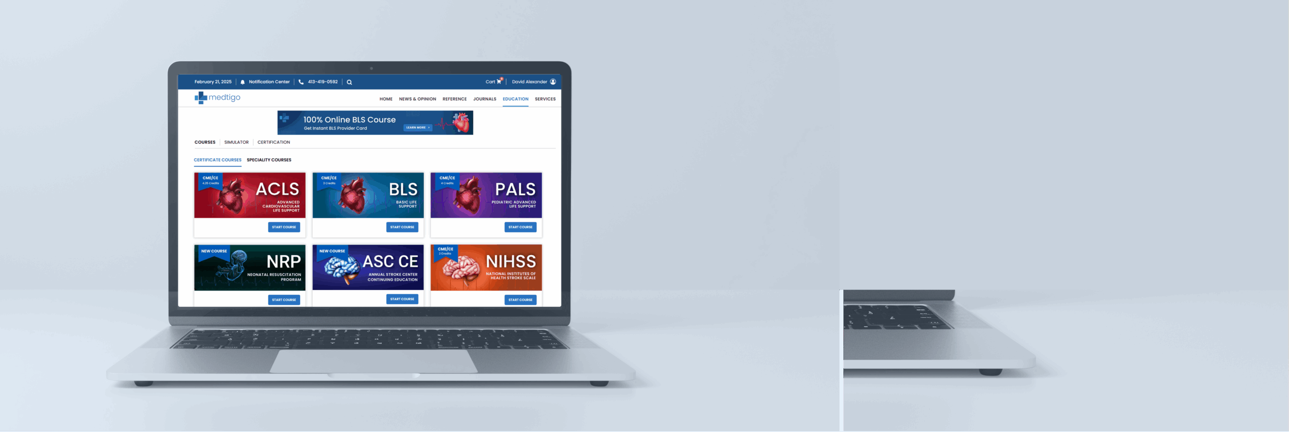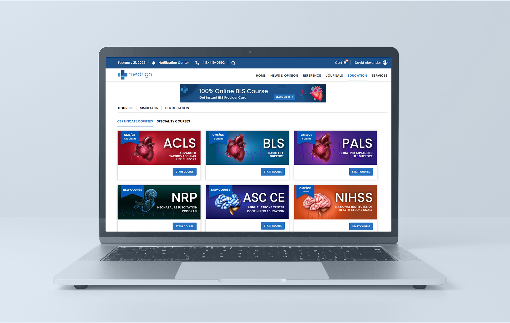 Get complimentary access to certificate courses, including ACLS, BLS, PALS, NRP, ASC CE, NIHSS, and Opioid Management. These courses offer valuable features such as CME/CE credits, provider cards, full-size certificates, online simulations, and certificate tracking, helping you enhance your skills and stay certified. Advance your career with high-quality education designed to meet professional standards.