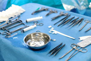 Cleaning: The skin of the abdomen is cleaned with an antiseptic solution to lower the risk of infection.
