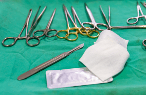 The equipment includes nonabsorbable polypropylene ties, disposable syringes, containers, antibiotic solution, urinary sphincter kit, barbecue clamps, catheters, contrast solution, skin dressings, electrocautery, hegar dilators, scissors, penrose drain, retracts, sponge bowl, saline, and umbilical bandage. Â