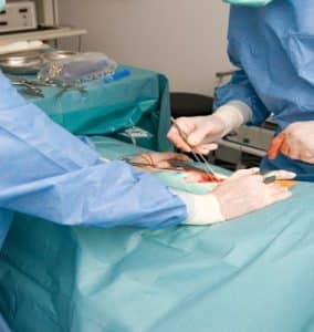 For small hernia cases, the defect may be closed with sutures alone by stitching the edges of the healthy tissue together.