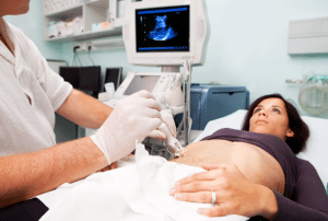A water-based gel will be applied to the abdomen. This gel eradicates air pockets between the skin and the ultrasound transducer, the probe, allowing more explicit transmission of sound waves.Â