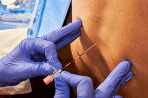 Bleeding: Rarely, bleeding into the CSF fluid or at the site of the puncture may happen. This may result in a “bloody tap” or blood in the cerebral fluid.