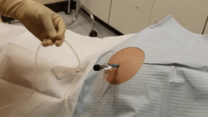 Drainage tubing and bag: It connects the needle and drainage bag and collects the excess fluid from the peritoneal cavity.