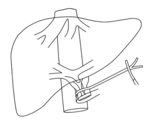 The ligament is gently dissected to isolate the portal triad structures (hepatic artery, portal vein, and common bile duct).