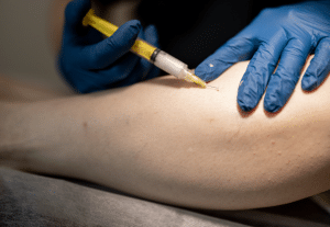 Step 4-Needle Insertion: Sclerosant solution is then applied to the vein by inserting a thin needle.Â