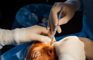 The first two thirds of the nose that are found to be defective are often repaired with thinner skin that has less oil glands. The paramedian forehead skin flap, an interpolation flap which is- enriched with an abundant amount of tissue as well as matches successfully the color and texture of the patient’s original skin, offers an excellent opportunity for resurfacing the entire surface of the patient’s nose.Â