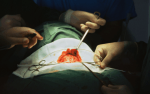 Step 7-Parathyroid Gland Preservation: Parathyroid glands that have become devascularized are replaced back into the surrounding muscles and sown with little clips to be used later in identification.