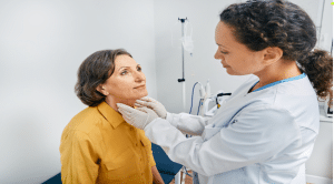 Imaging: Ultrasound or CT scan to evaluate any changes of thyroid size and nodules.