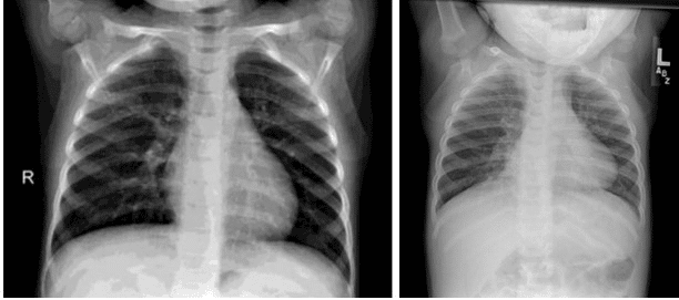 Chest radiograph of a healthy child vs a child with bronchiolitis due to RSV